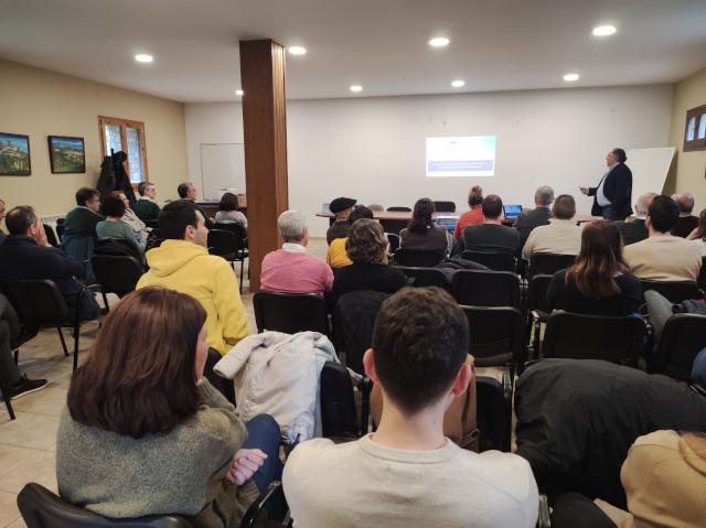 el director gerente del IAA, Luis Estáun; el representante de Puente la Reina de Jaca, la presidenta de la comarca de la Jacetania, Olvido Moratinos. Con exposiciones del jefe del área de Explotación del IAA Fernando López, de Javier Salamero, representante de la empresa ACAI, que presentaró la tecnología de biodiscos como una solución eficiente para la depuración en municipios de pequeño tamaño. Por último, Javier Olmos Fernández-Corugedo, de la empresa Aqlara, abordó la construcción y explotación de pequeñas depuradoras, analizando los desafíos y beneficios de estas infraestructuras.